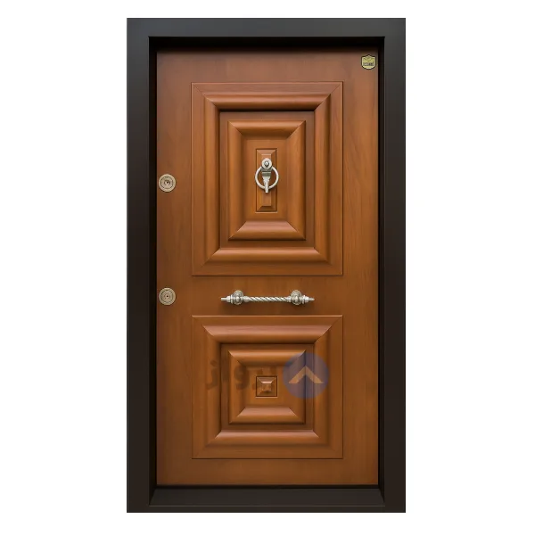 • درب‌های با روکش چوب (Wood-Veneer Doors): این درب‌ها دارای هسته داخلی فولادی هستند، اما سطح خارجی آن‌ها با لایه‌ای از چوب طبیعی (مانند گردو و بلوط) یا روکش‌های مصنوعی طرح چوب (مانند MDF و لمینوکس) پوشانده شده است. این مدل‌ها برای افرادی که به دنبال ظاهری کلاسیک، گرم و لوکس برای ورودی ساختمان خود هستند، گزینه‌ای ایده‌آل محسوب می‌شوند.
