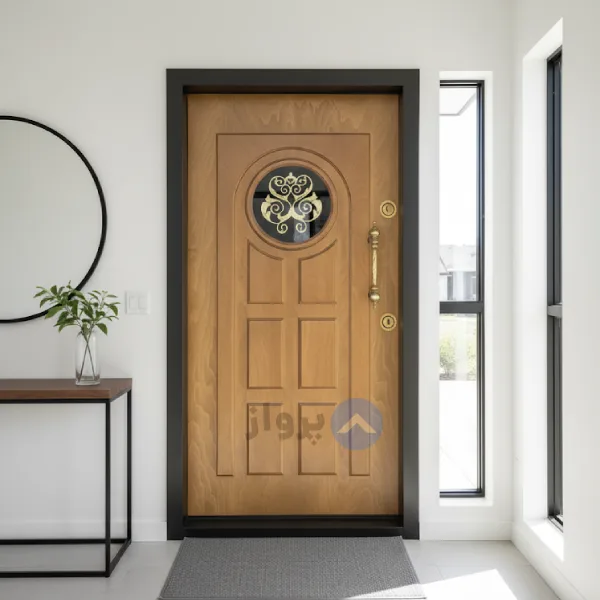 درب ورودی ضدسرقت روکش راش رنگ گردویی طرح آرامیس ضد دیلم